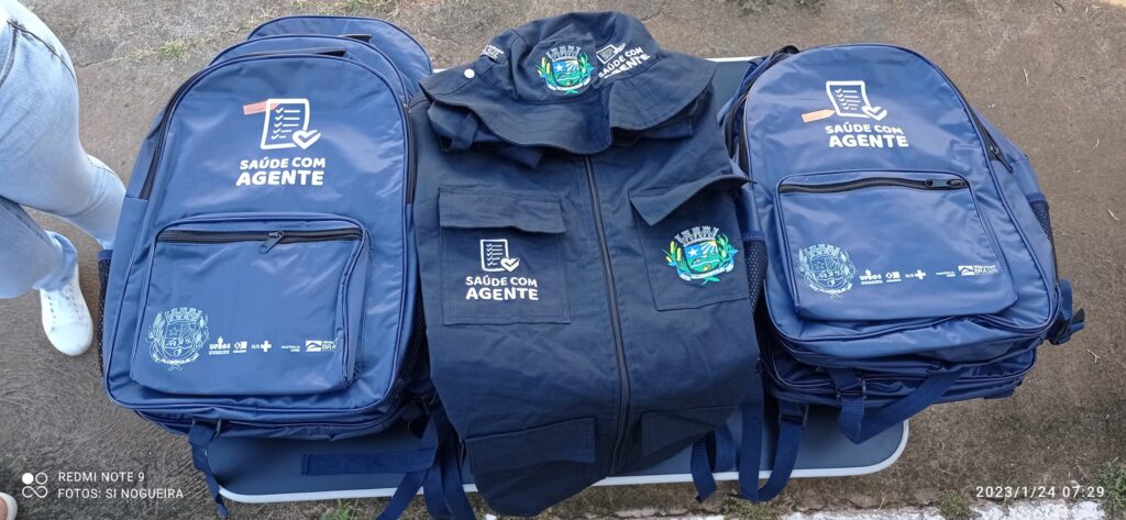Os agentes de Saúde também receberam o Kit do Programa “Saúde com Agente”, contendo uma mochila, colete e chapéu. Foram entregues 11 kits, totalizando R$4.576,00 de investimentos.